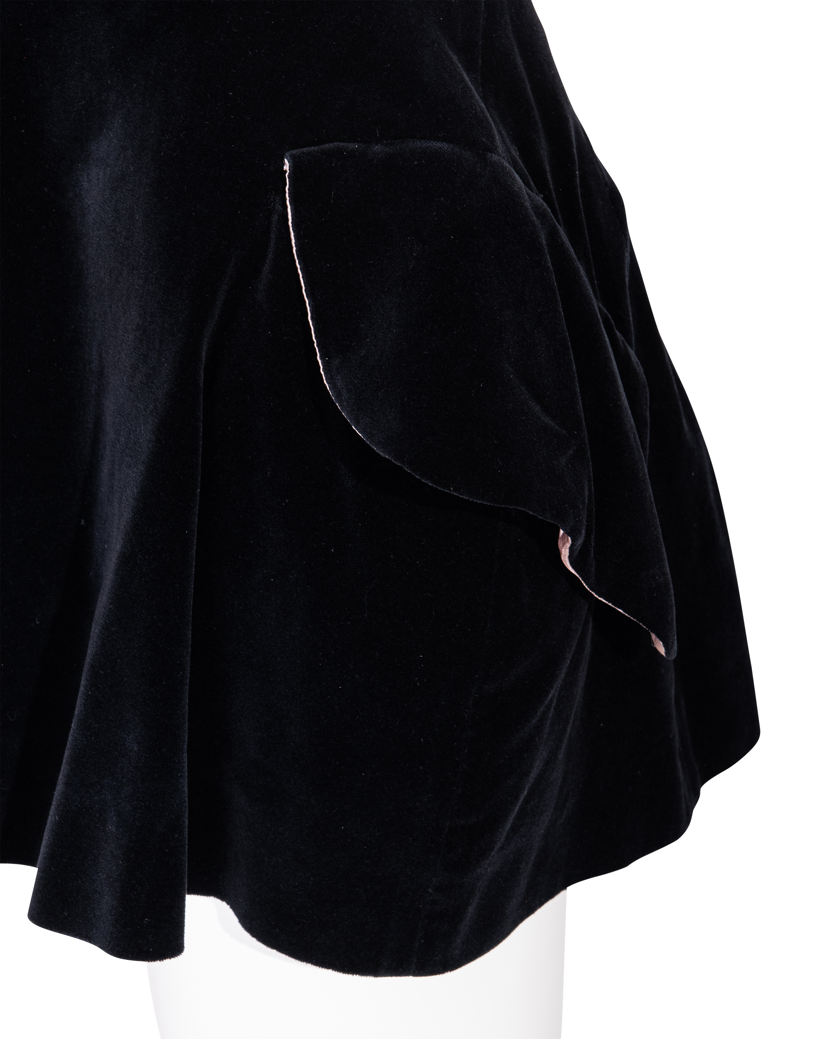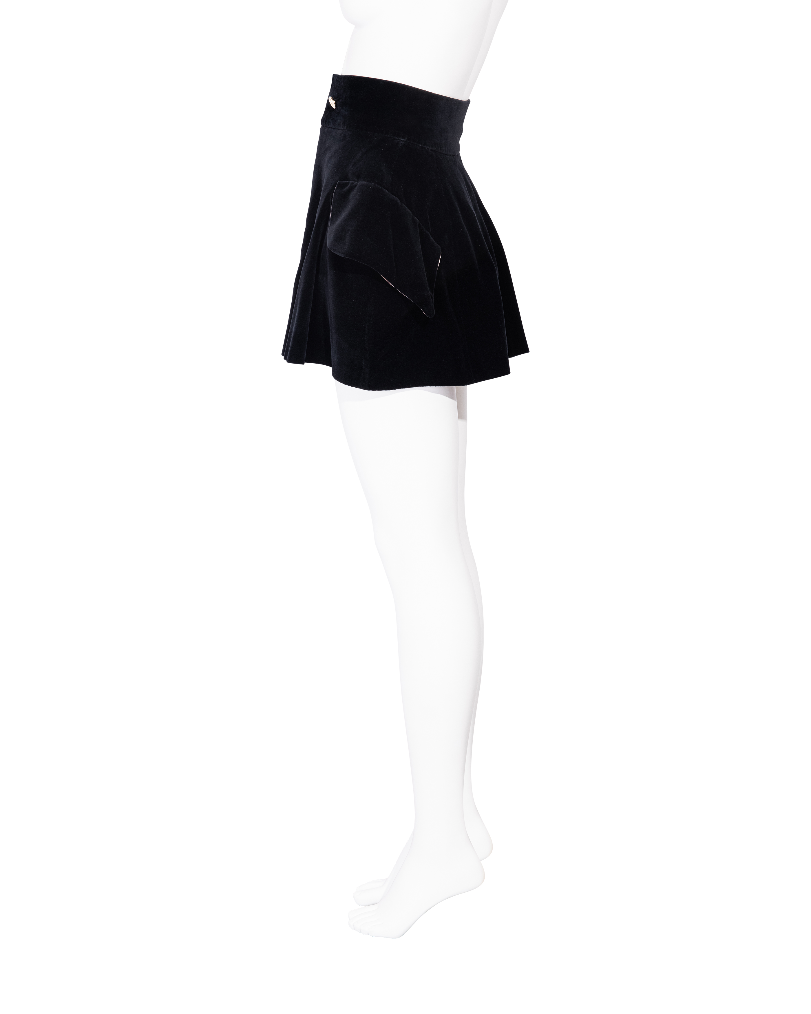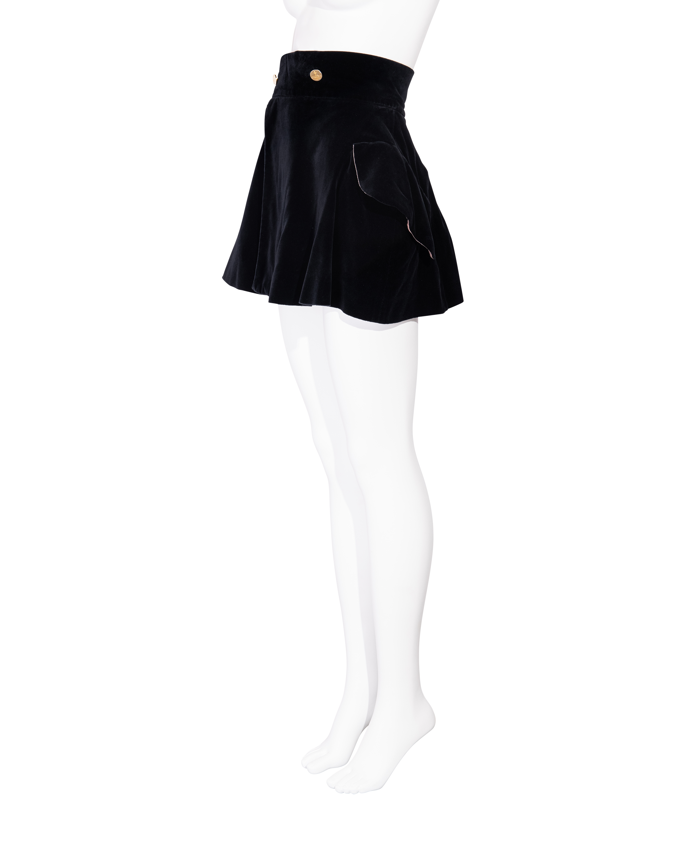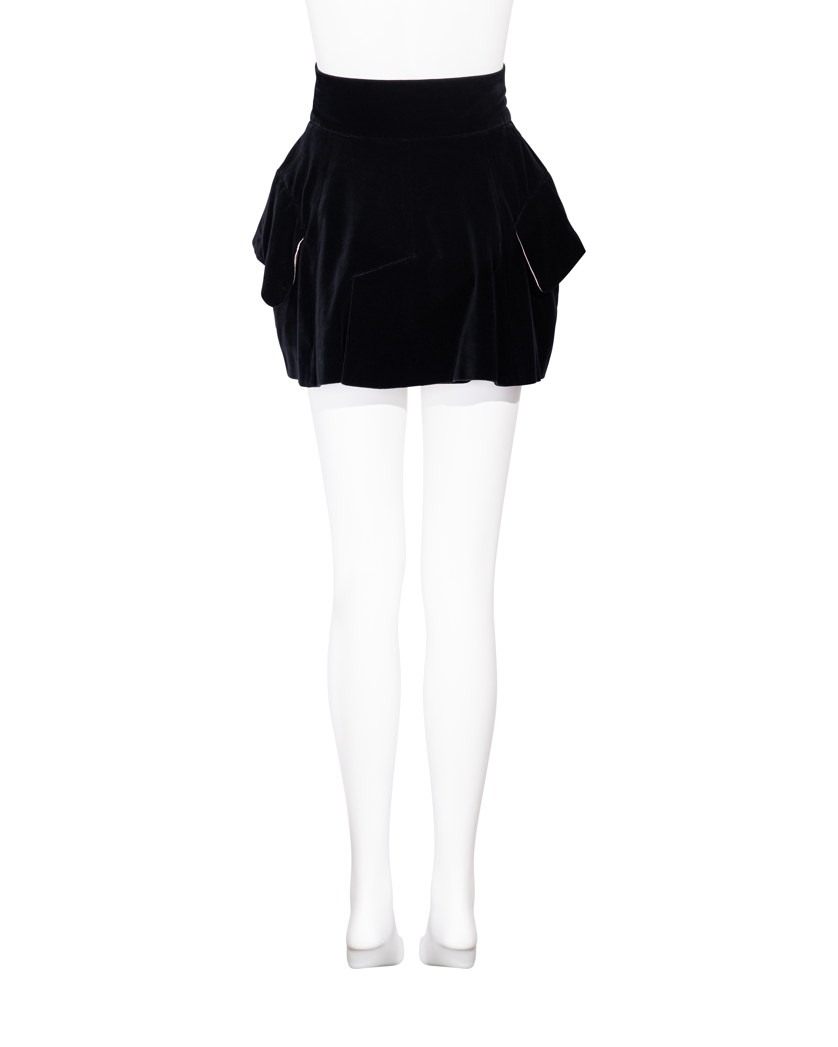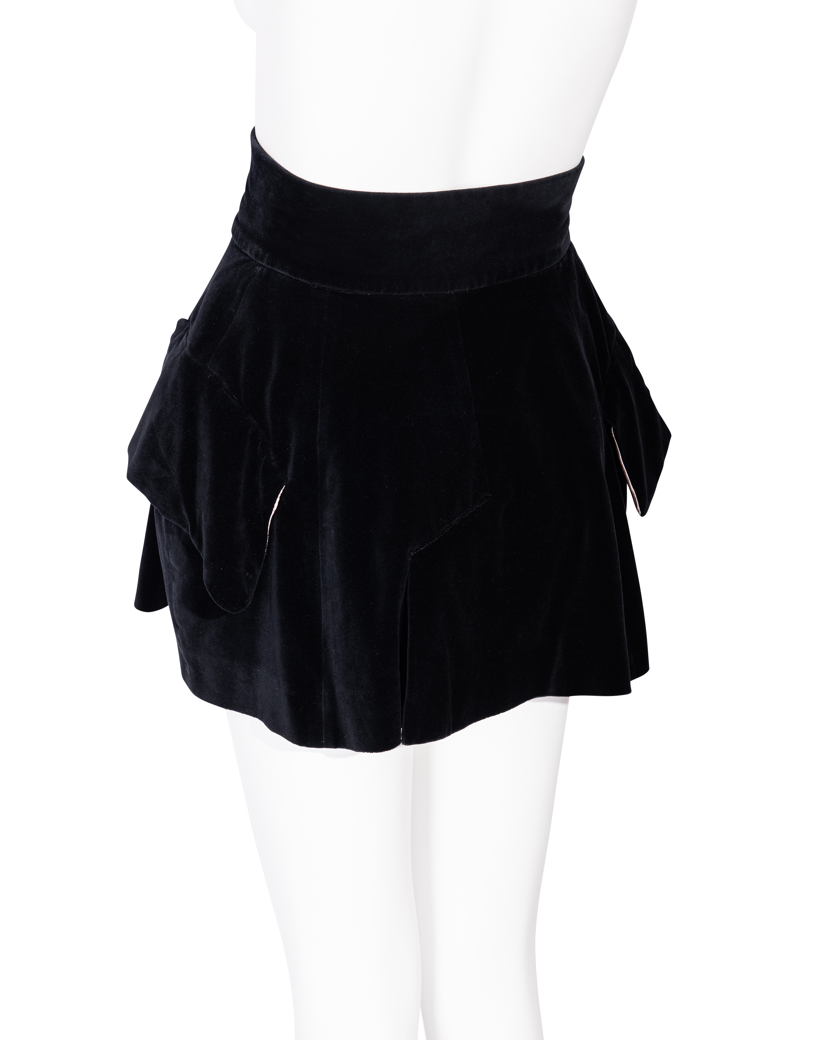 c. 1992 Black Velvet Mini Skirt with Flap Pockets