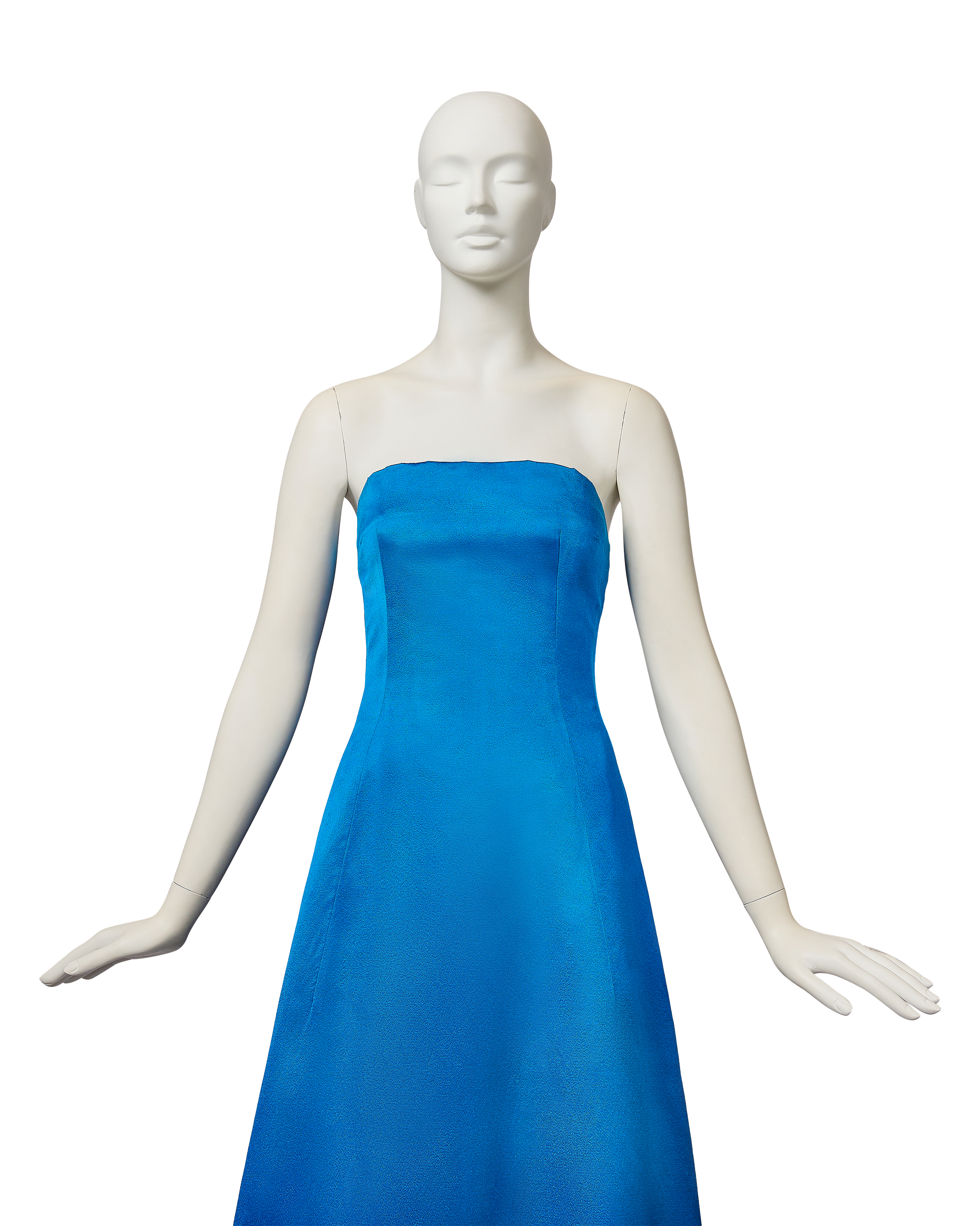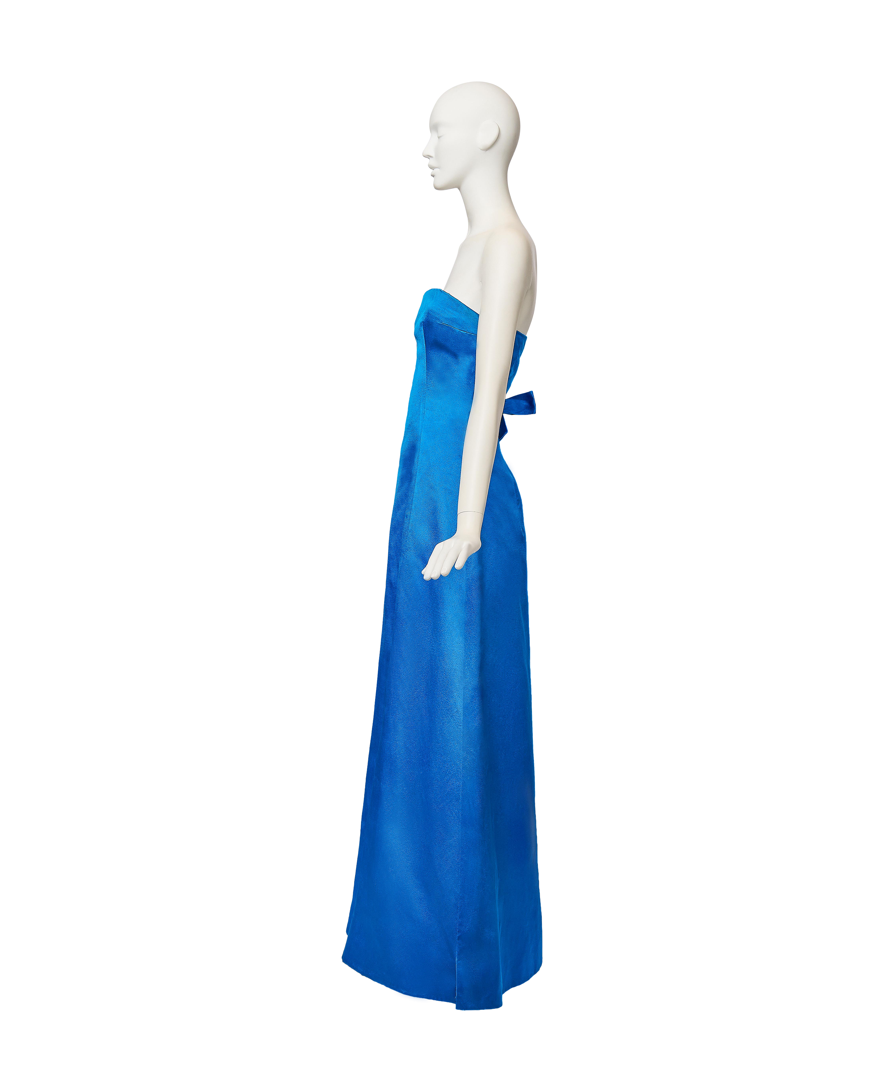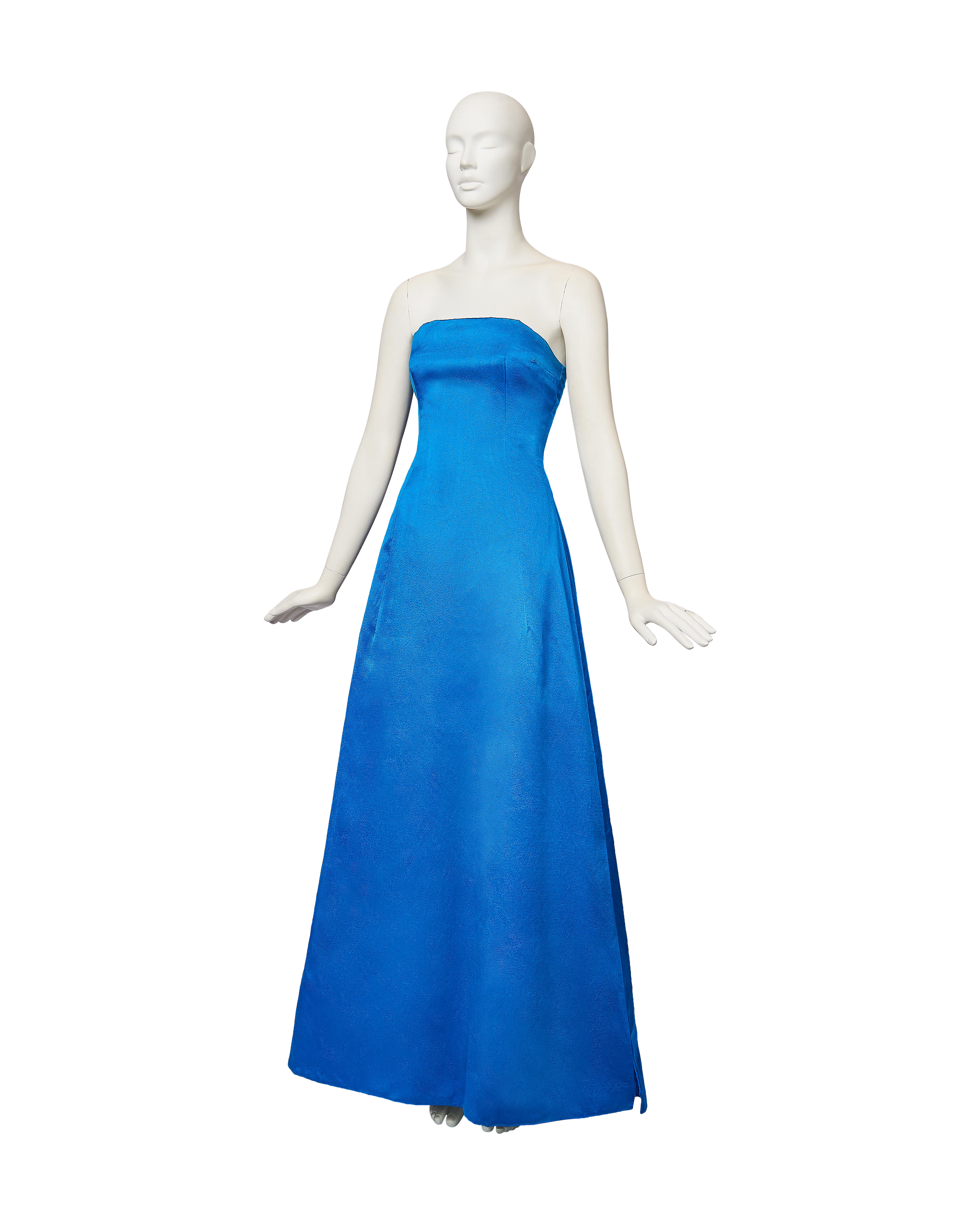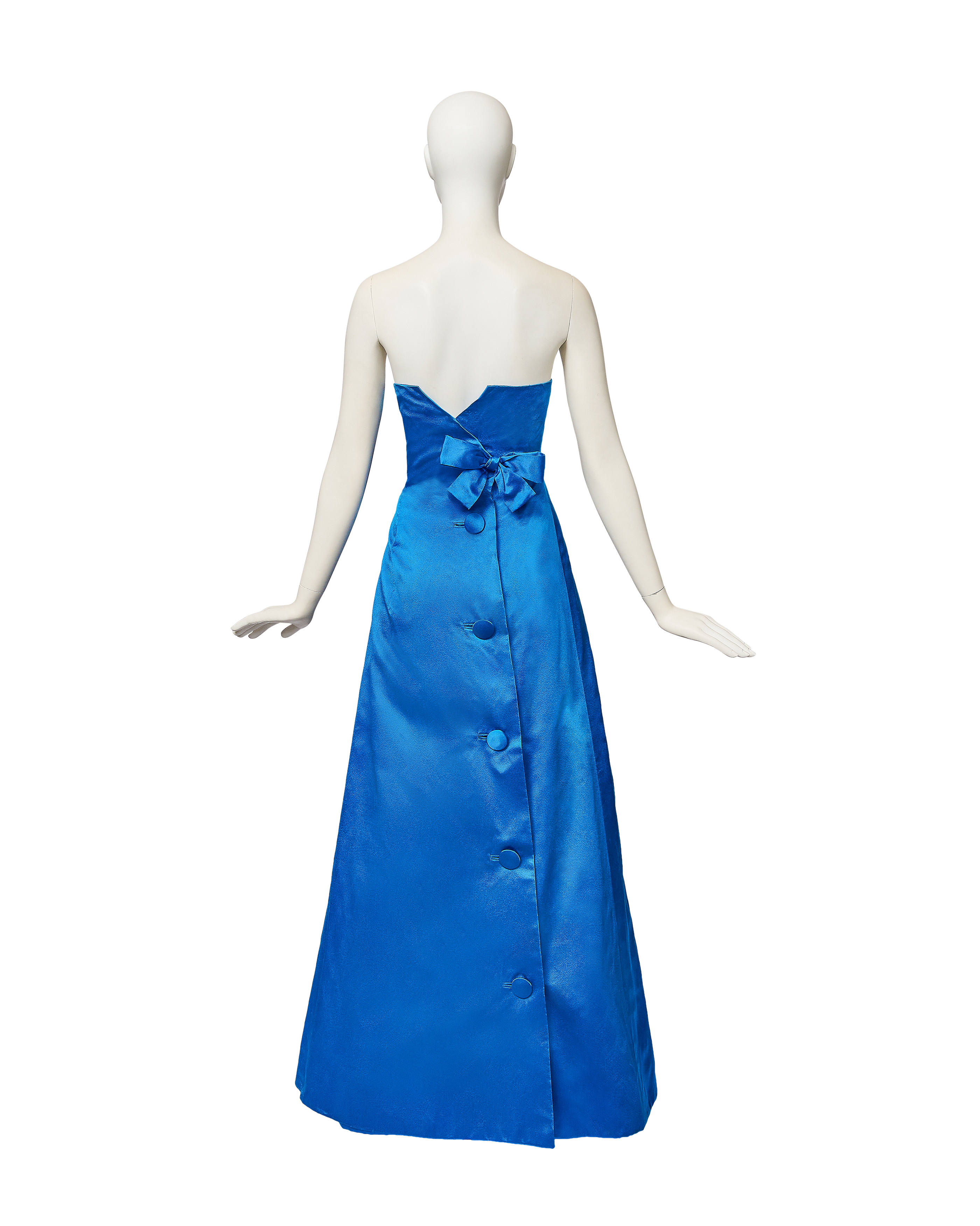 c. 1959 Couture Strapless Blue Silk Evening Gown