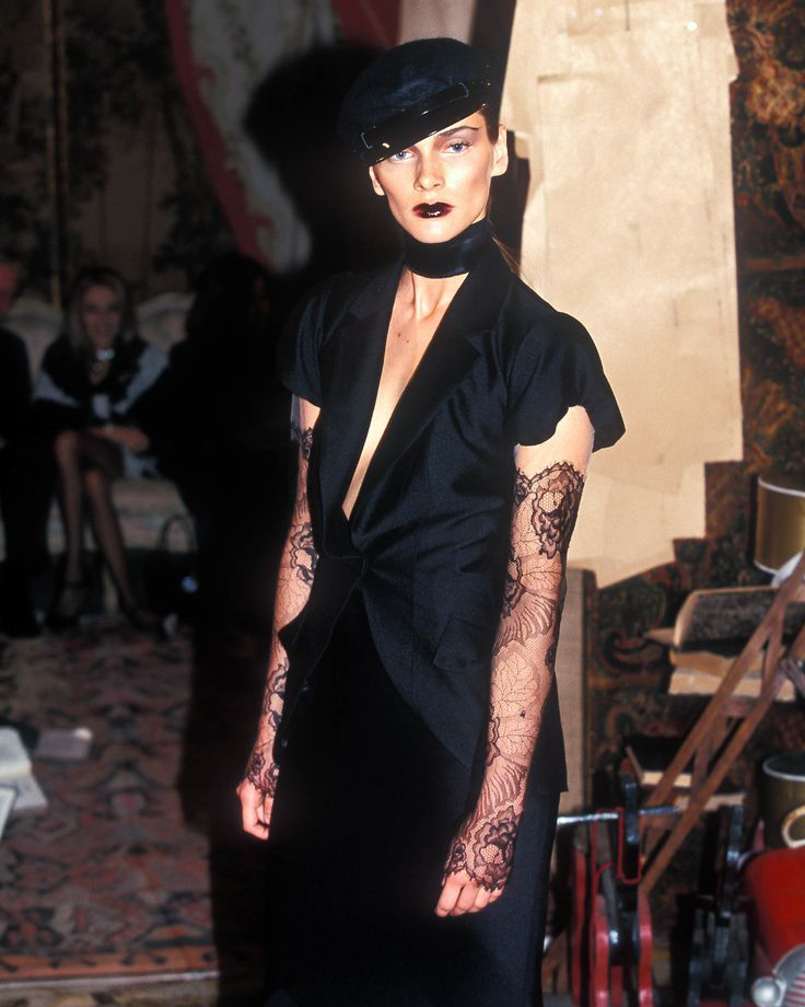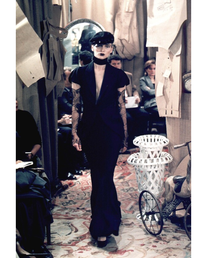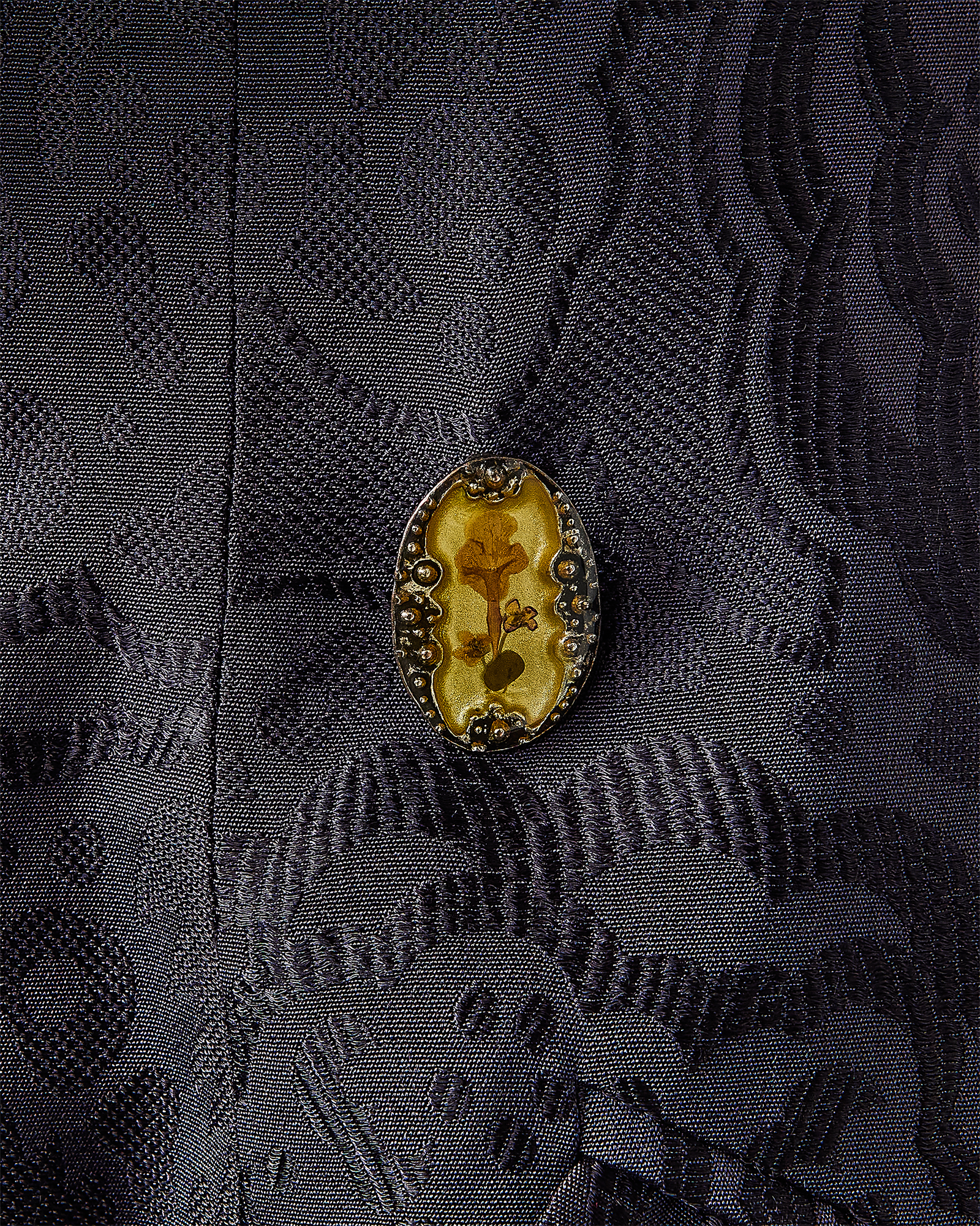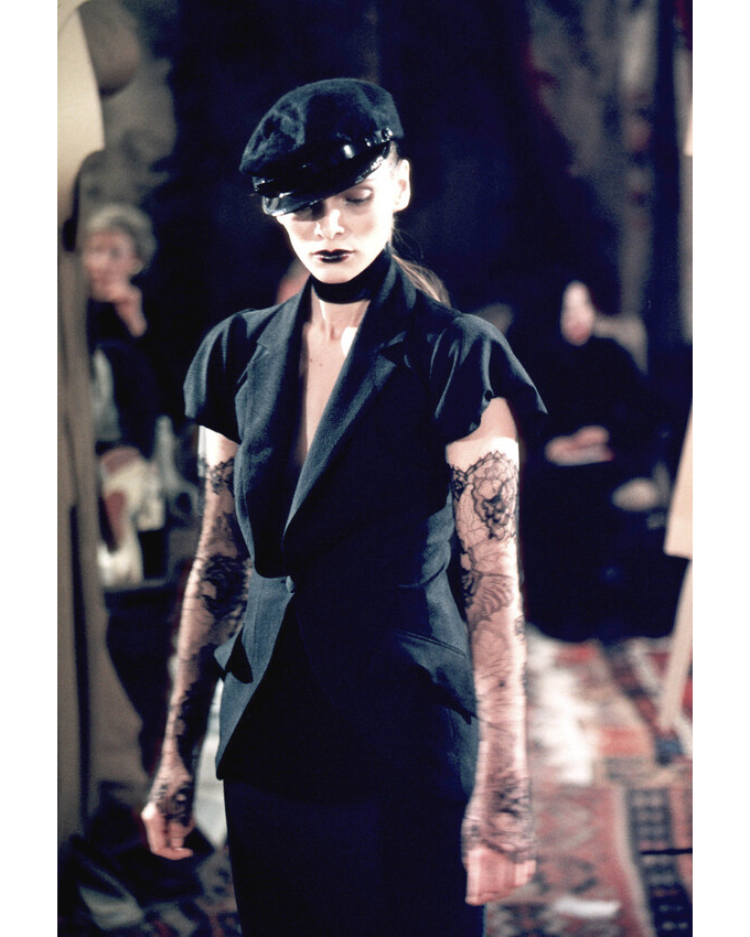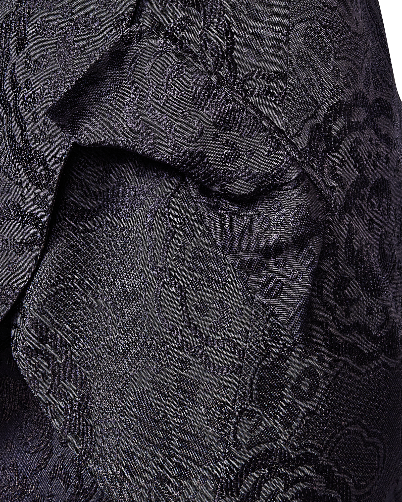 Marked size US 12 / FR 44. Best fits size US 8 (tightest in waist of jacket); can fit size US 4 - 8 with jacket styled looser, as skirt accommodates a range of sizes with elasticized waistband. Measurements are taken with jacket buttoned. Photographed clipped slightly on size US 2 - 4 mannequin.
