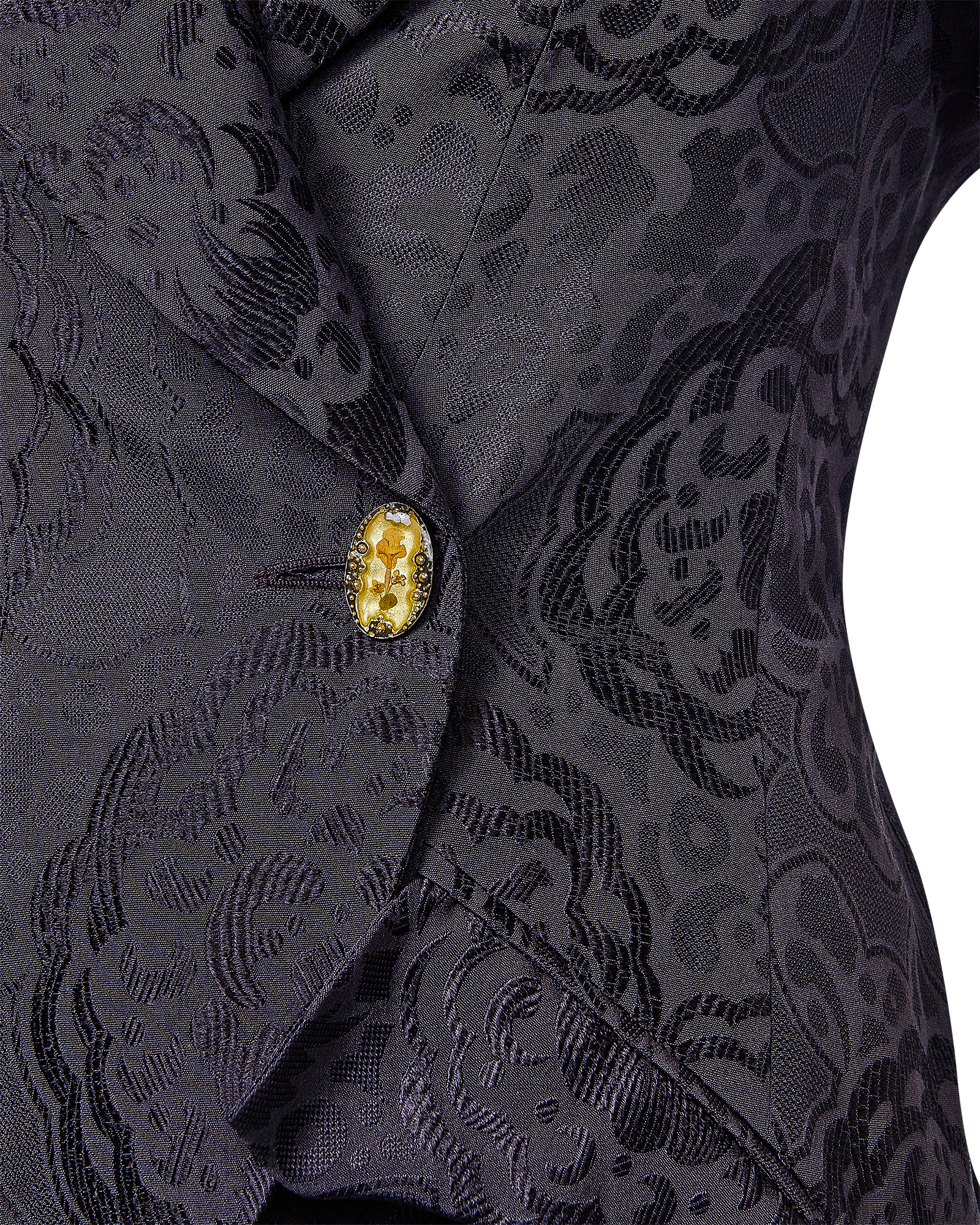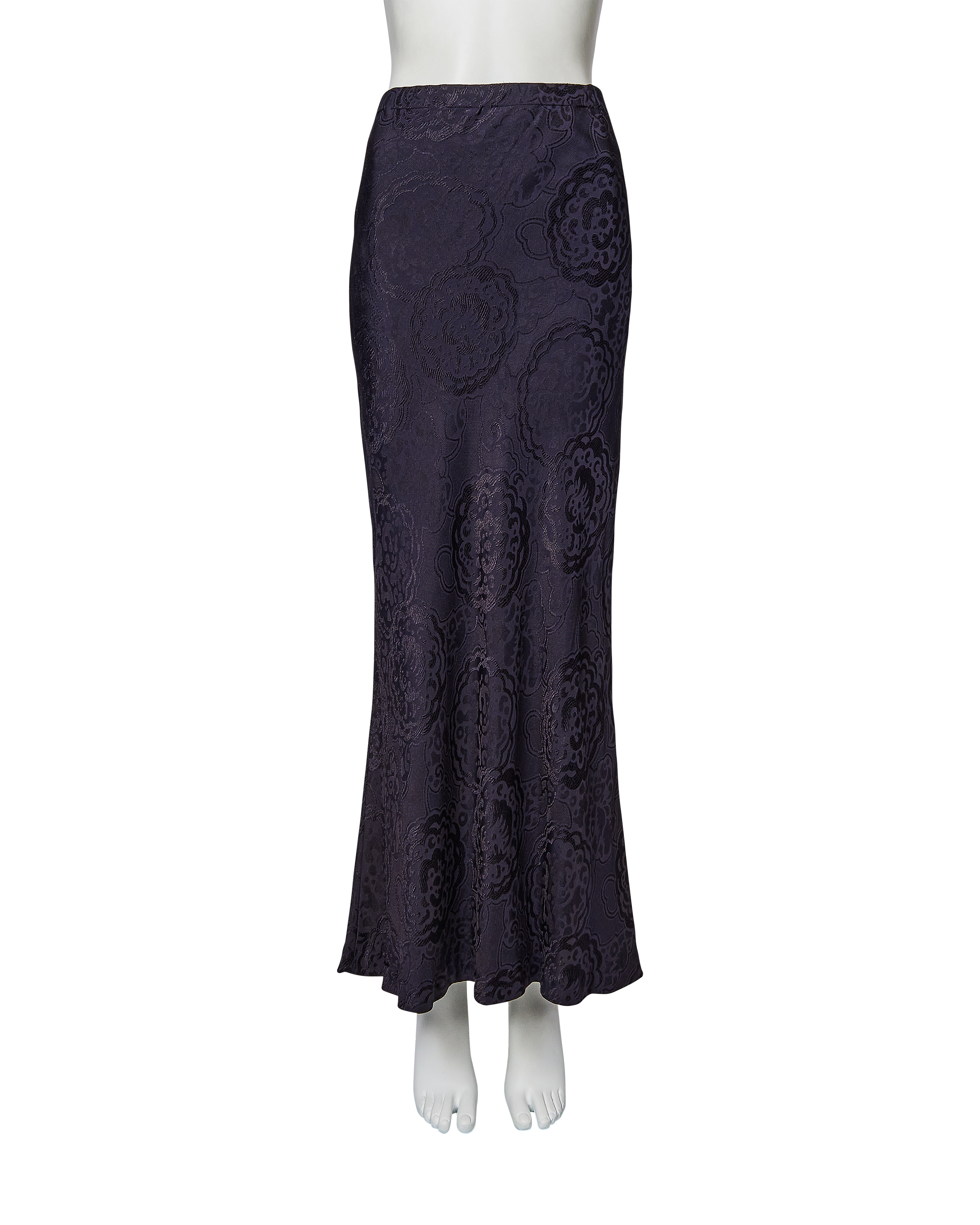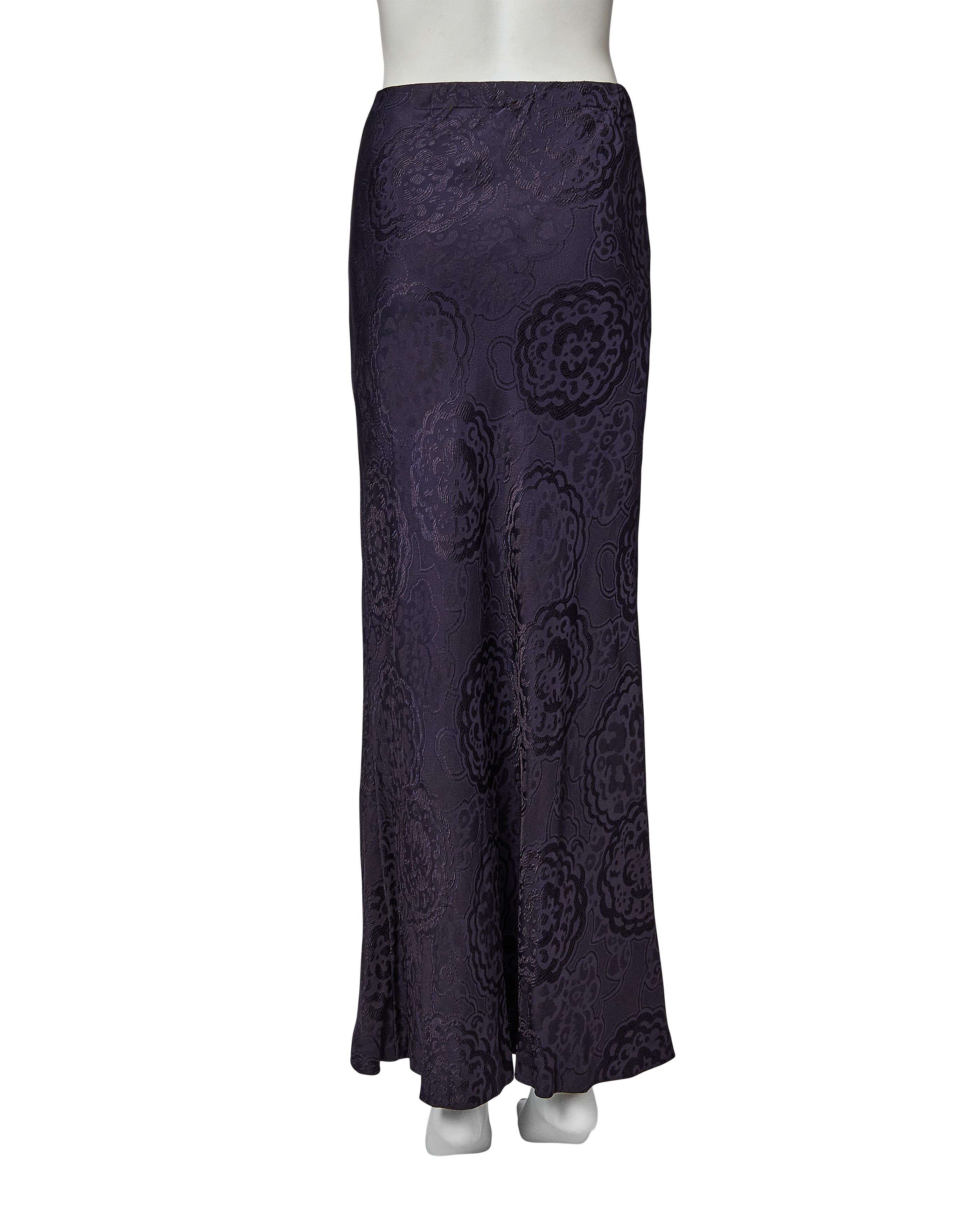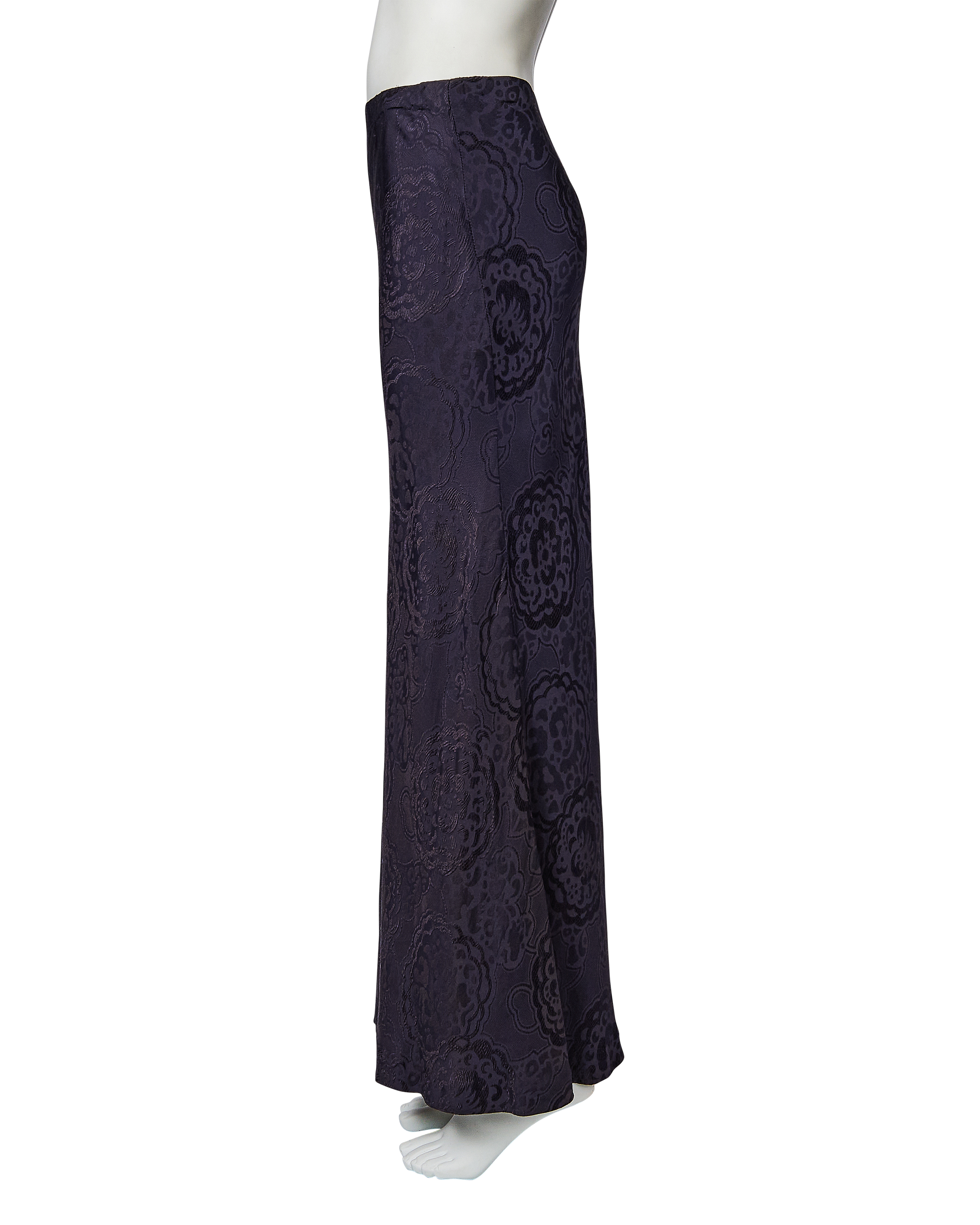 S/S 1999 Deep Purple Brocade Pattern Short Sleeve Jacket and Maxi Skirt Set